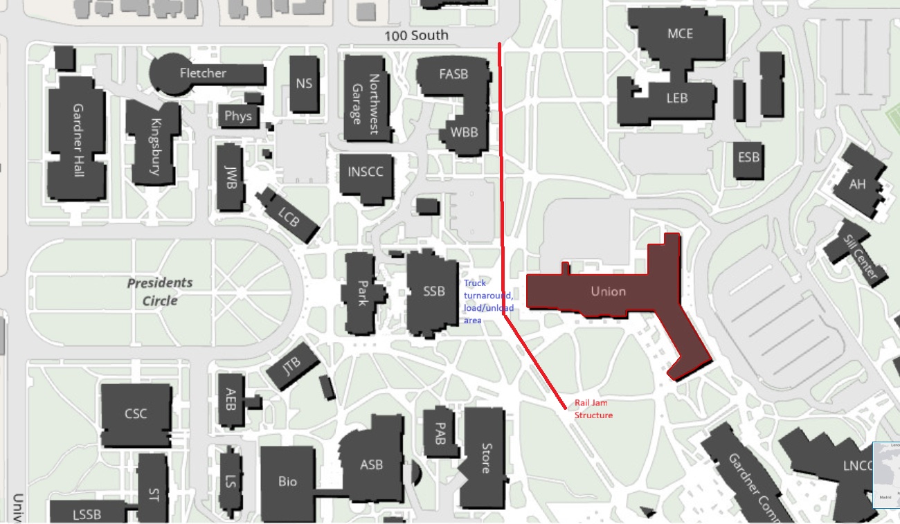 The campus community can expect some vehicles on campus sidewalks between 100 South and the large Block U (just east of the Campus Store) during the week of Nov. 2-7.