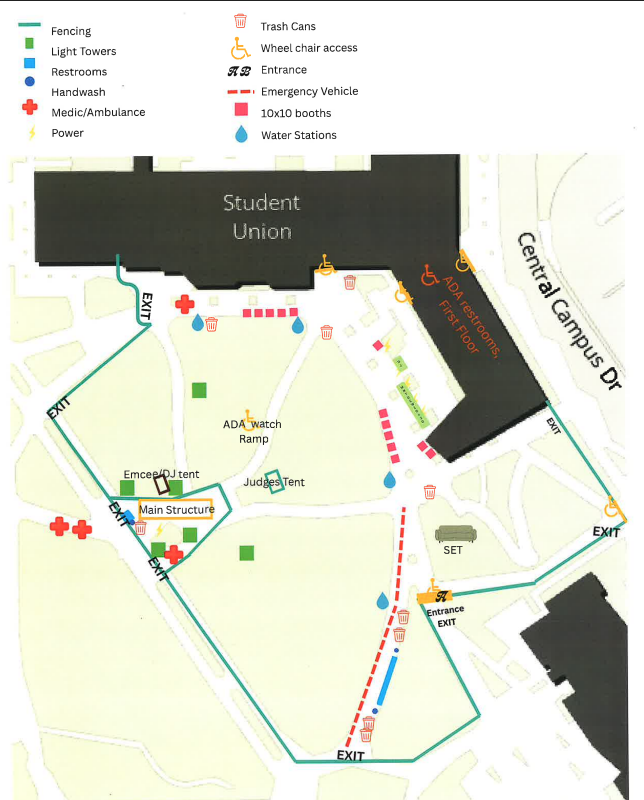 Pedestrian traffic will remain open for all main campus walkways until noon on Friday, Nov. 7, when security personnel will instruct pedestrians to walk around the event venue. At that time the fencing now in place will close and security sweep will then take place. Doors will reopen for the event at 4 p.m.