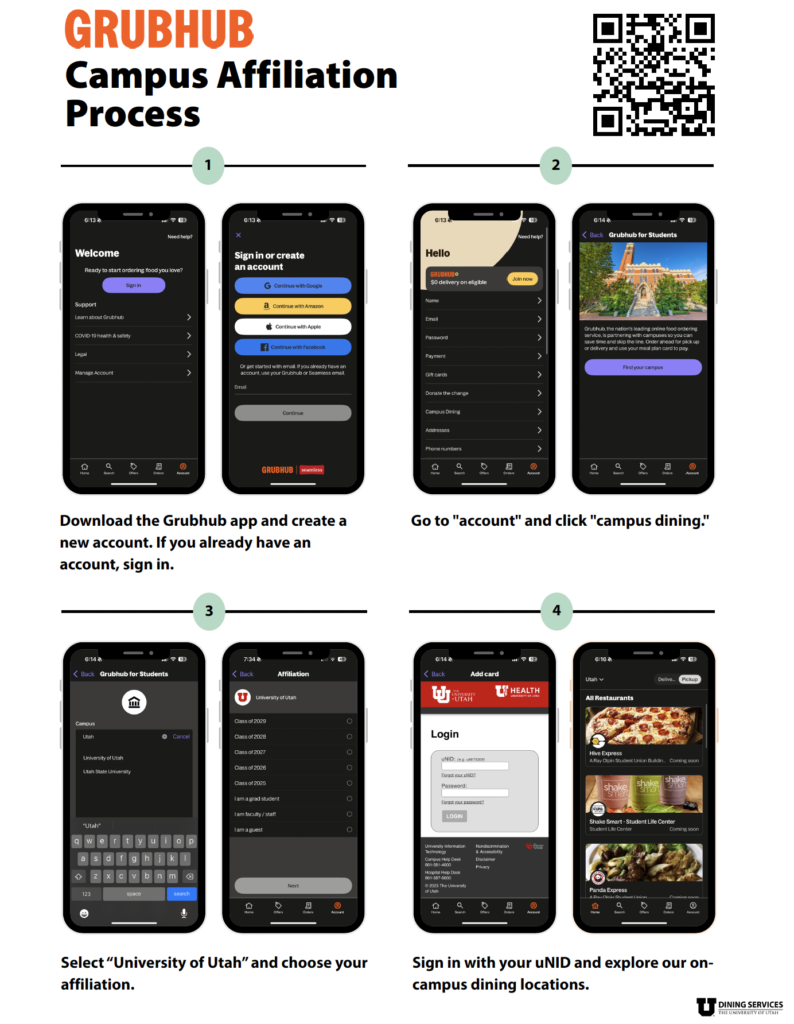 Starting this spring semester, Grubhub, the recognized ordering platform for local restaurants, is now the takeout ordering system for on campus dining at the University of Utah.
