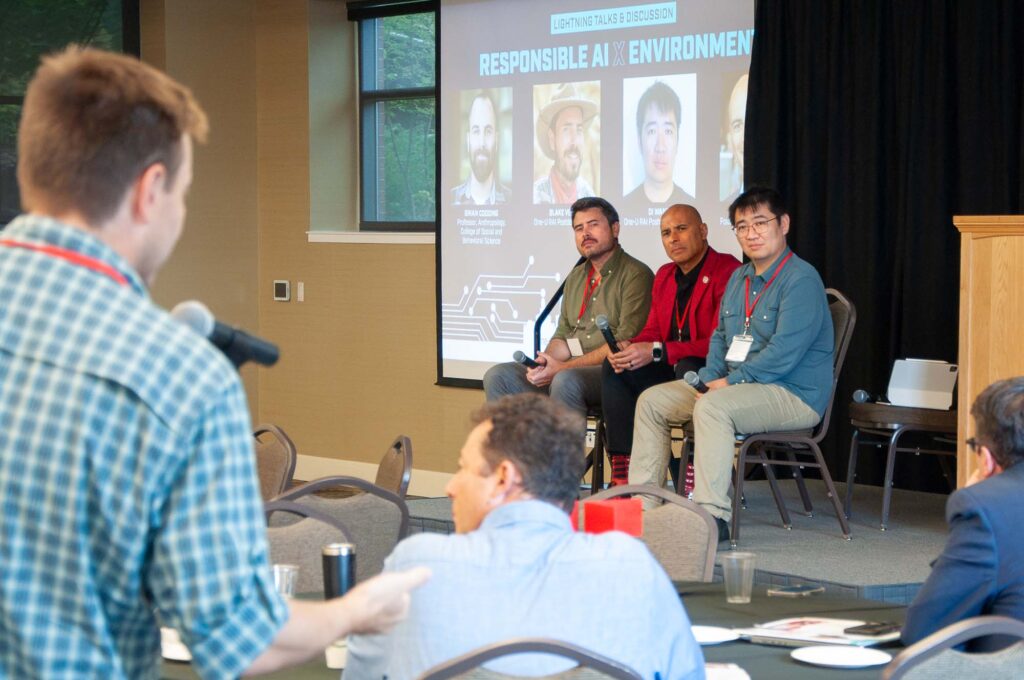 During a panel examining what One-U RAI and similar efforts should achieve going forward, university, state, and industry leaders underscored the need to proactively shape AI and ensure policies and technologies are pro-human—from preventing labor displacement to incentivizing data-sharing to developing success metrics.