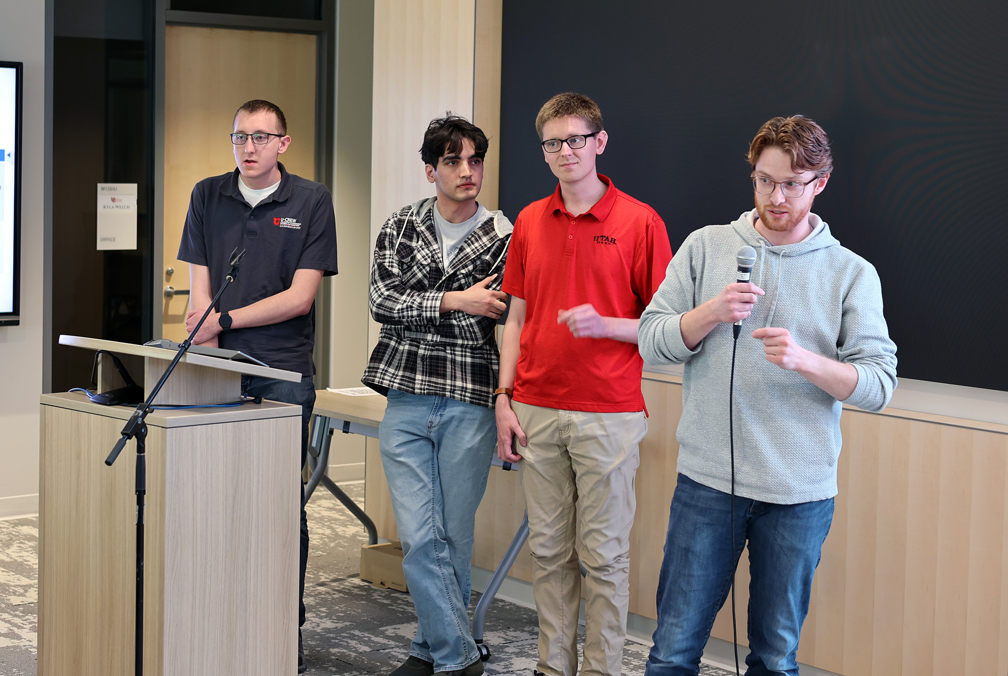 After a total of 12 teams submitted slide decks Saturday morning, the teams had four minutes to pitch their idea and answer questions from the in-person and online audience. Afterward, the audience voted for the best presentation—the “People’s Choice Award.”