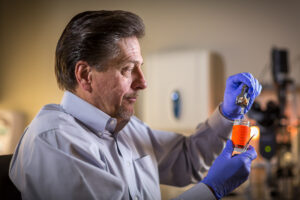 The then-marine biologist pivoted his entire field of study to focus on AMD, working to understand the disease from the ground up. Now, Hageman is a distinguished professor of ophthalmology and visual sciences at the University of Utah—and he’s on the brink of a therapy that could stop AMD in its tracks. “The ultimate goal is to slow or halt AMD with a single injection into the eye,” Hageman says.