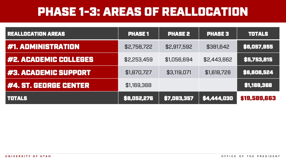 “As our largest institution, [the University of Utah] had the biggest challenge with the largest reallocation. With a $20 million reallocation, it’s a very significant change,” said Rep. Neil Walter, a Republican from Washington County. “It’s clear you’re thinking strategically about the future. You’re really doing your best to reinvest in future opportunities for our students and our faculty.”