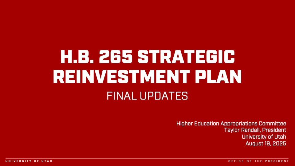 Along with leaders at all the state’s colleges and universities, University of Utah leaders presented their plans to reallocate nearly $20 million—one-third of the statewide total—in a strategic “reinvention” of the university. University leaders note that the changes required under the bill are not happening in isolation, but as part of a broader transformation already underway through Impact 2030.