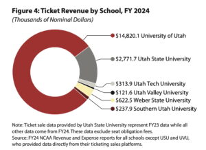 The Gardner Institute limited its enquiry to Utah’s public institutions, with the University of Utah accounting for at least half the activity generated. Not covered in the report, however, is the private Brigham Young University, whose sports footprint is on par with that of its upstate rival.